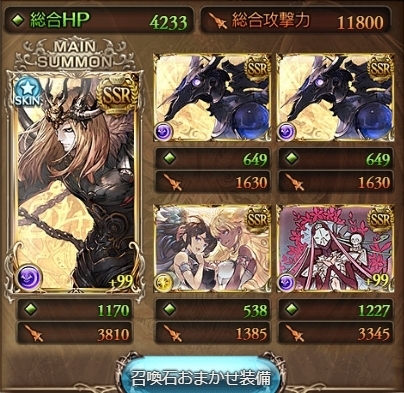 召喚石のサテュロスが無い為にパラゾニウムをガロットにしています。