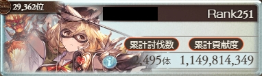 結果的には4日目の夕方頃に累計貢献度が10億を超え騎空団の勝敗も決まった為にフィニッシュ。