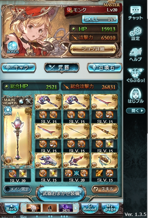 前回の古戦場に合わせ悪滅と竹槍を作成した為に若干変わっています。
